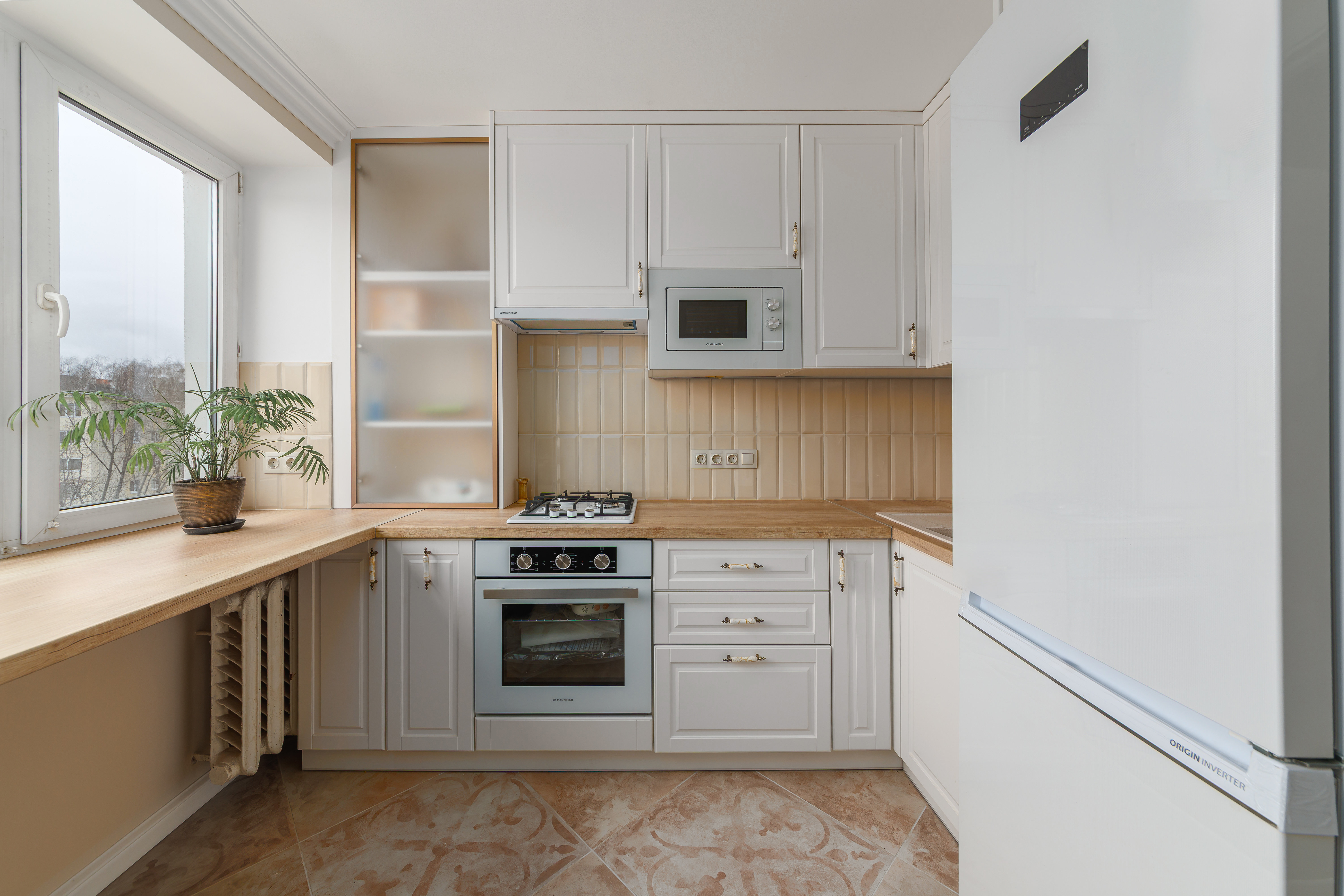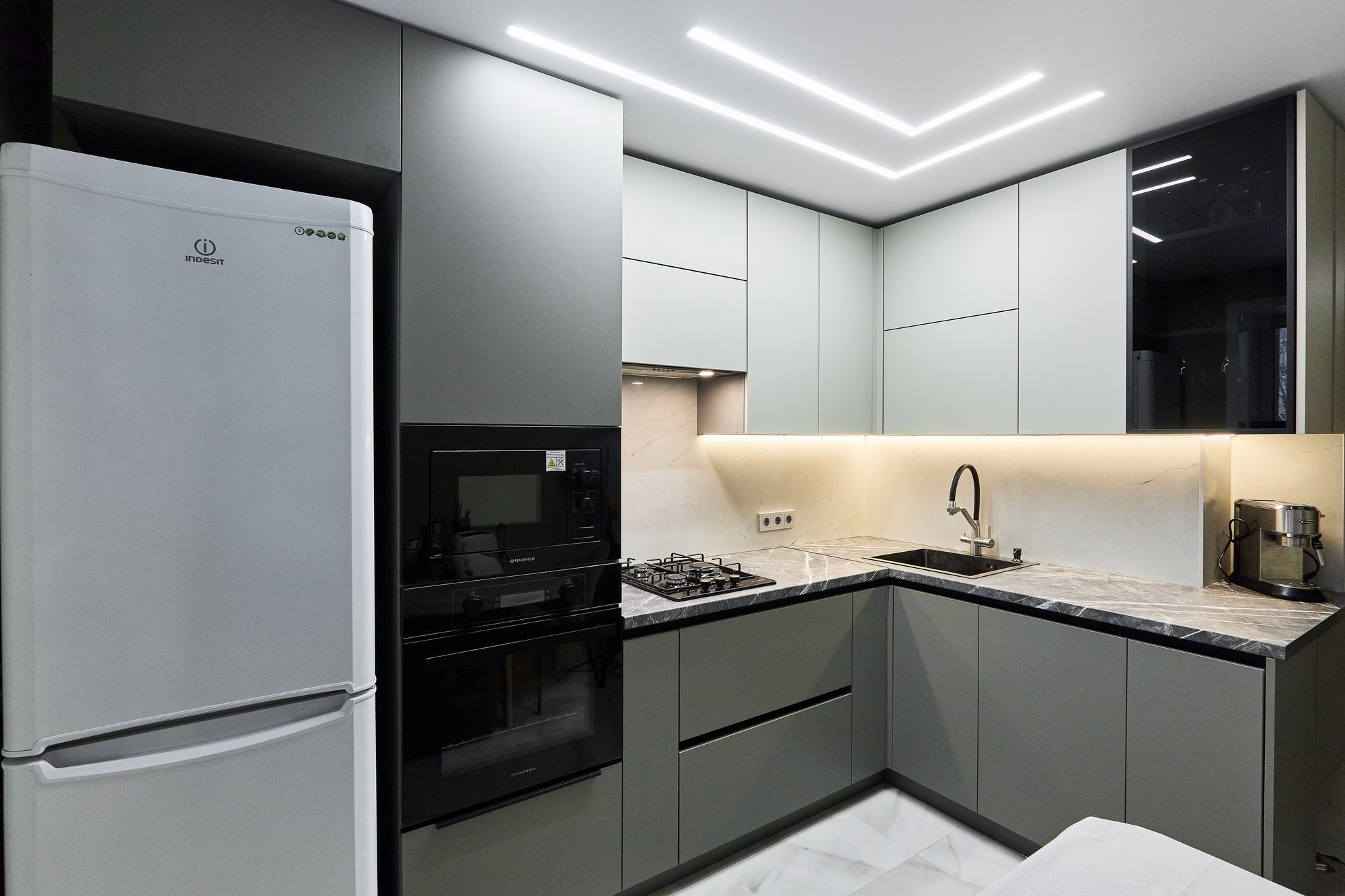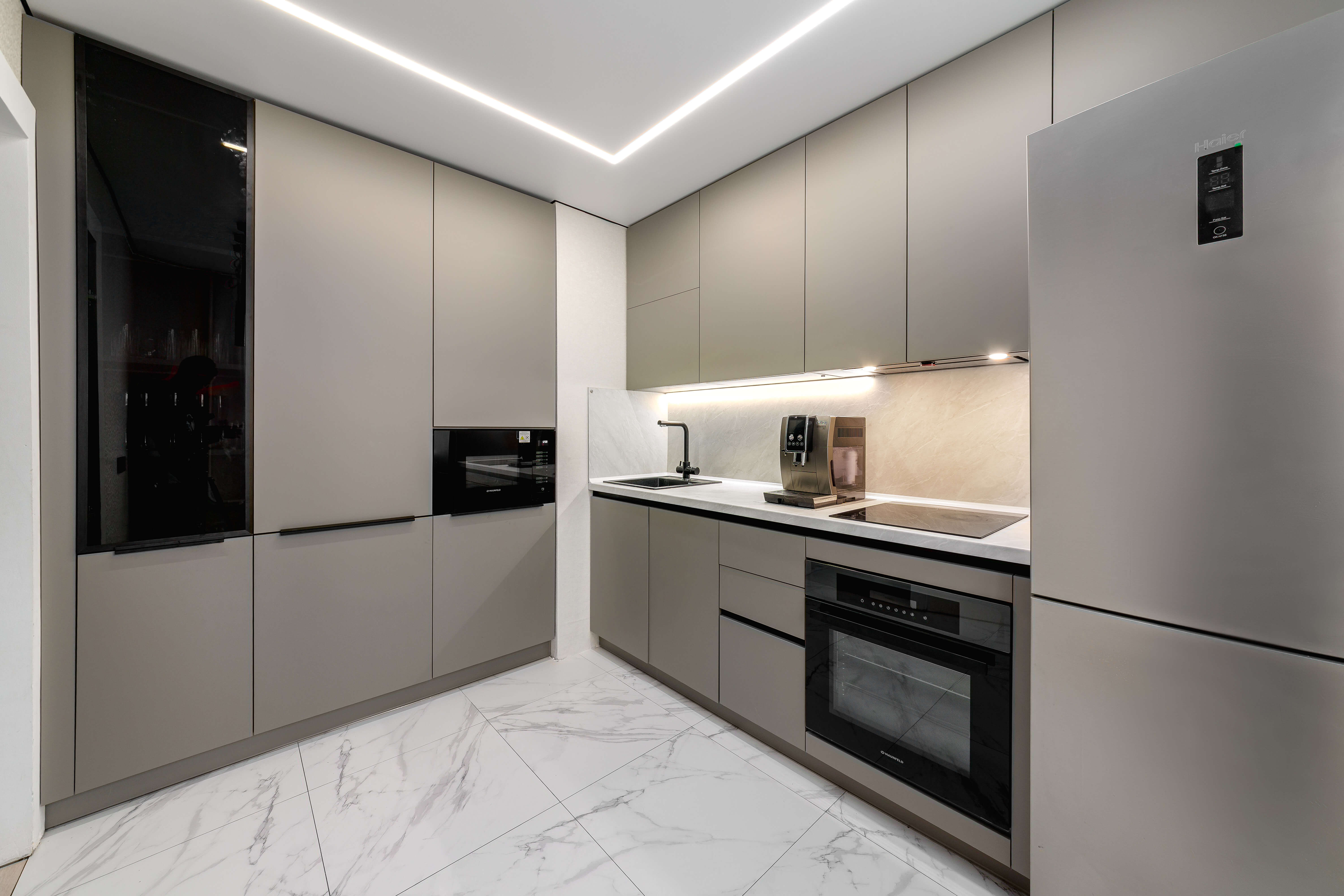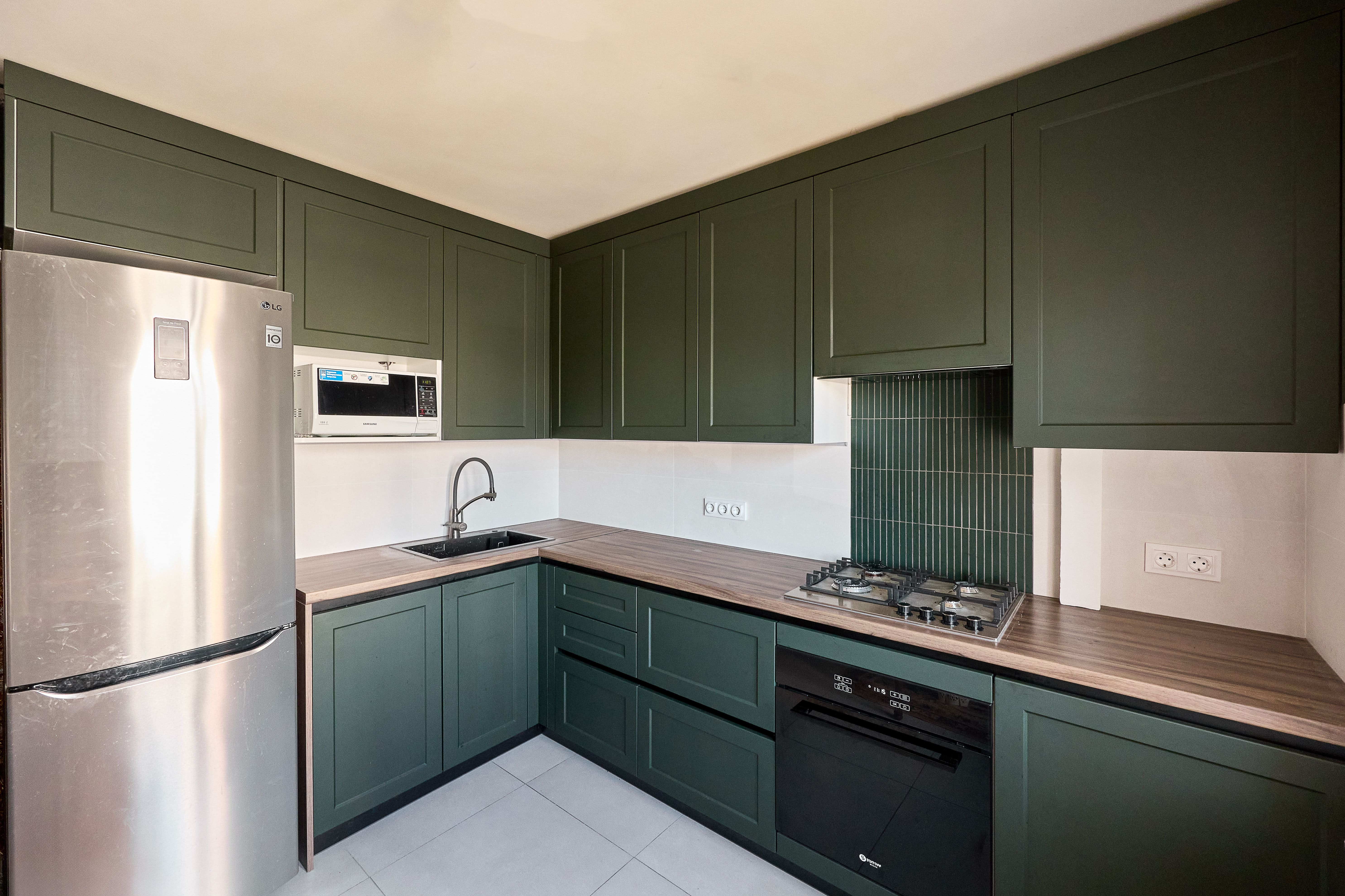 Кухня поставляется со всем необходимым, включая столешницу. Дополнительно подберем бытовую технику и сантехнику.